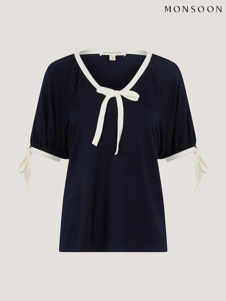 Monsoon Blue Taylor Contrast Bow Jersey T-Shirt