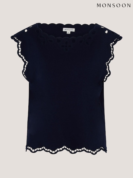 Monsoon White Bree Broderie Sleeve Jersey T-Shirt