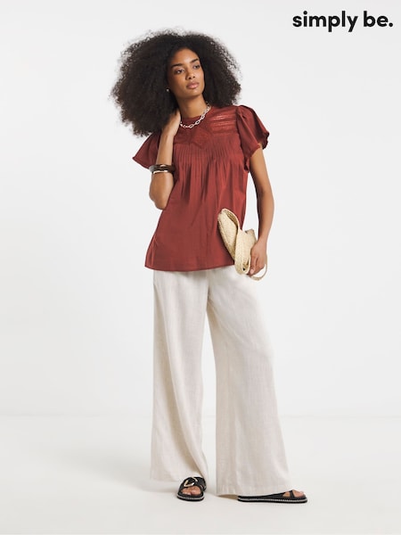 Simply Be Brown Broderie Yoke Blouse