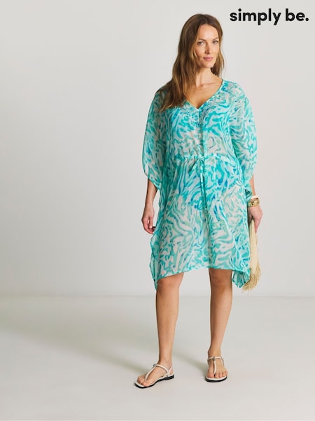 Simply Be Blue Zebra Print Beach to Beach Maxi Open Kaftan