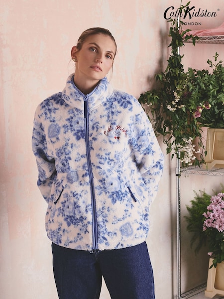 Cath Kidston Blue Hackney Rose Floral Borg Zip Up Fleece Jacket