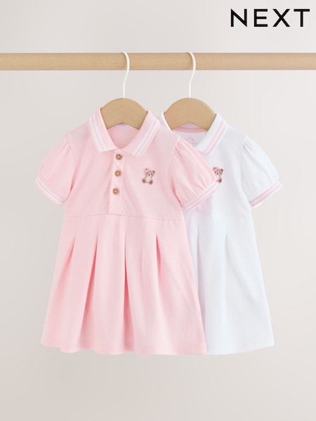 Pink White Short Sleeve Baby Dresses 2 Pack (0mths-3yrs)