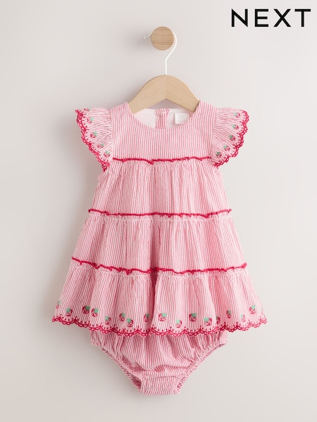 Red Strawberry Baby Tiered Woven Dress and Knickers Set 2 Piece (0mths-2yrs)