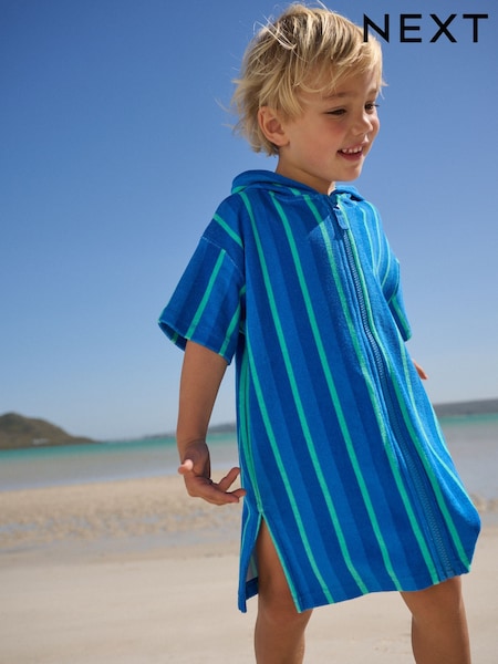 Blue/Green Stripe Towelling Zip Through Cover-Up (3mths-7yrs)