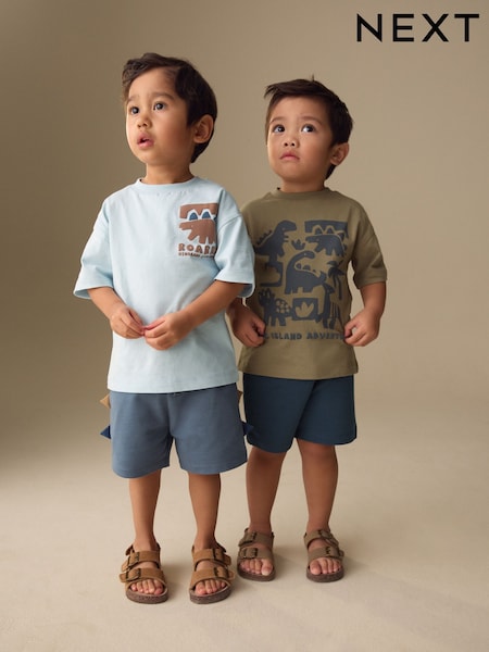 Blue/Brown Dinosaur Spikes Short Sleeve T-Shirt and Shorts Set 2 Pack (3mths-7yrs)