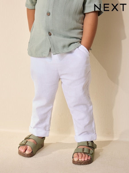 White Regular Fit Linen Blend Pull on Trousers (3mths-7yrs)