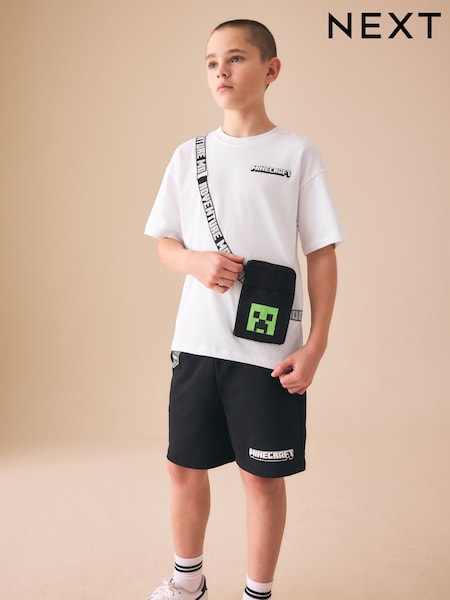 White/Black Minecraft Bag T-Shirt and Shorts Set (3-16yrs)
