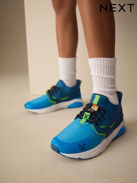 Blue Standard Fit (F) Minecraft Elastic Lace Trainers