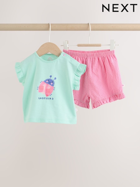 Green Pink Ladybird Short Sleeve Baby Top and Short Set 2 Piece (0mths-2yrs)