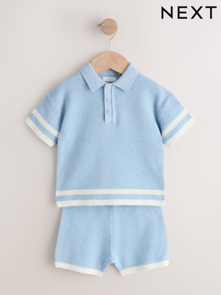 Blue Knitted Button Neck Polo Shirt and Shorts Set (3mths-10yrs)
