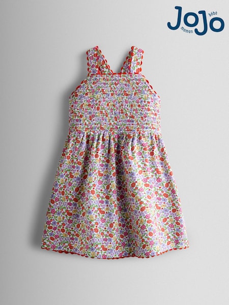 JoJo Maman Bébé Pink Strawberry Smocked Strappy Dress