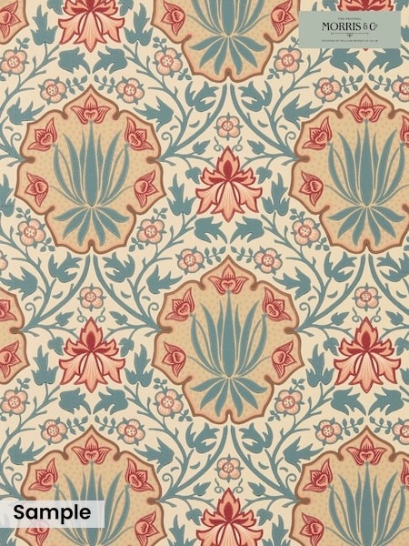 Morris & Co IndigoCrimson Iris & Rose Unfinished Works Wallpaper A4 Sample