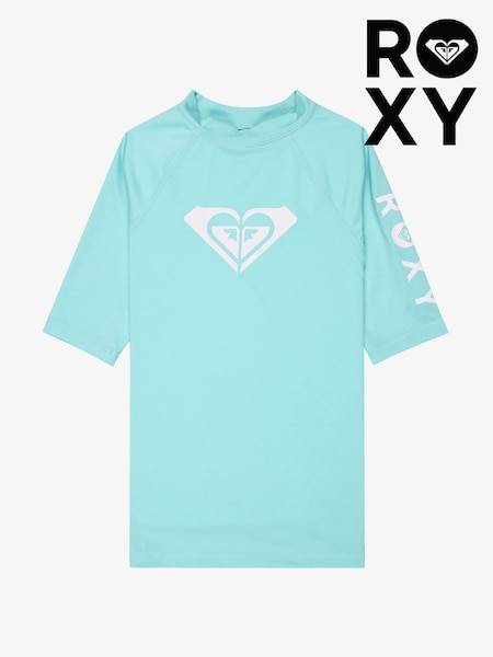 Roxy Blue Whole Hearted Short Sleeve Logo Rash Vest