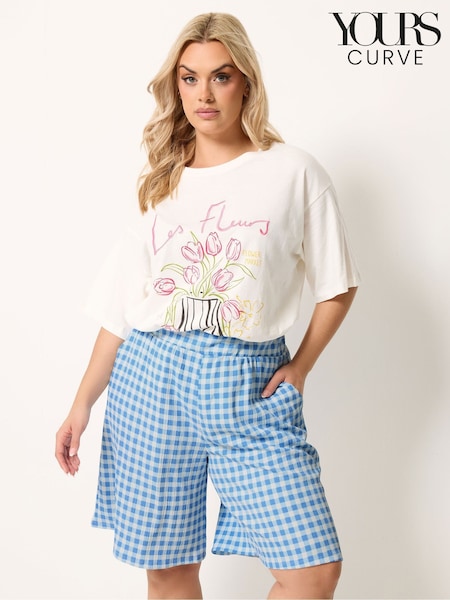Yours Curve Blue Gingham Jersey Shorts