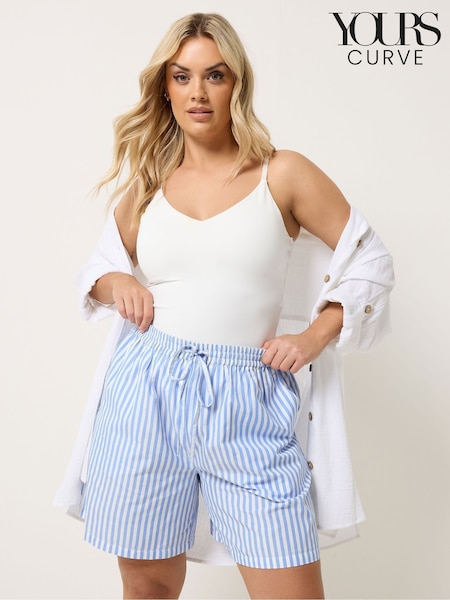 Yours Curve Blue Striped Woven Shorts
