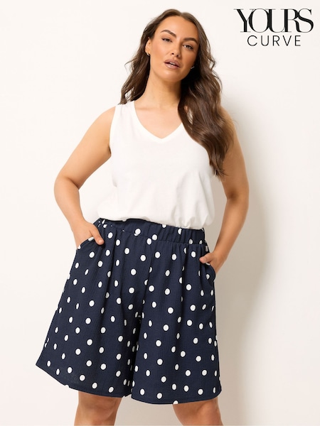 Yours Curve Blue Textured Resort Shorts
