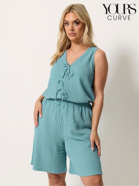 Yours Curve Blue Textured Resort Shorts