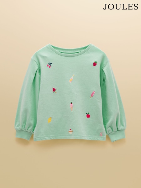 Joules Aqua Blue Girls' Embroidered Balloon Sleeve Sweatshirt