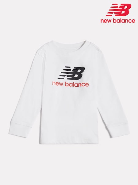 New Balance White Stacked Logo Long Sleeve T-Shirt