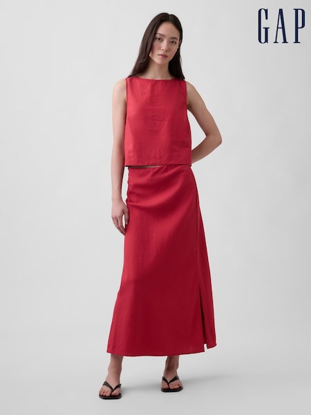 Gap Red Linen-Blend Maxi Slip Skirt