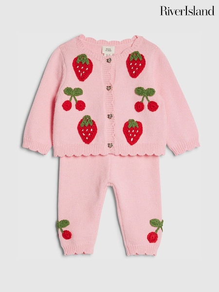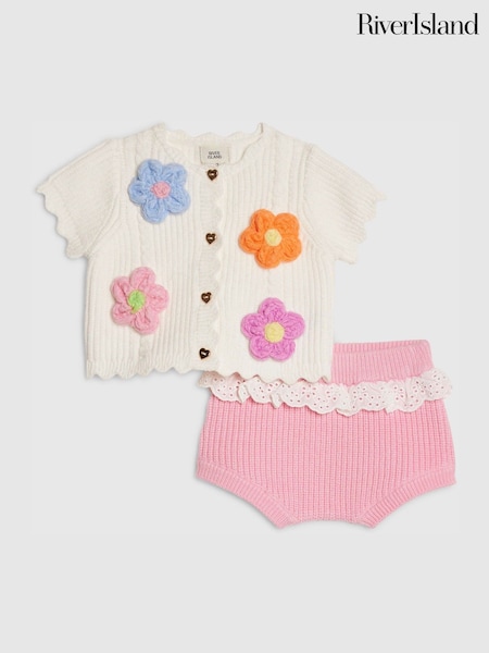 River Island Pink Broderie Daisy Knitted Cardigan & Leggings Set