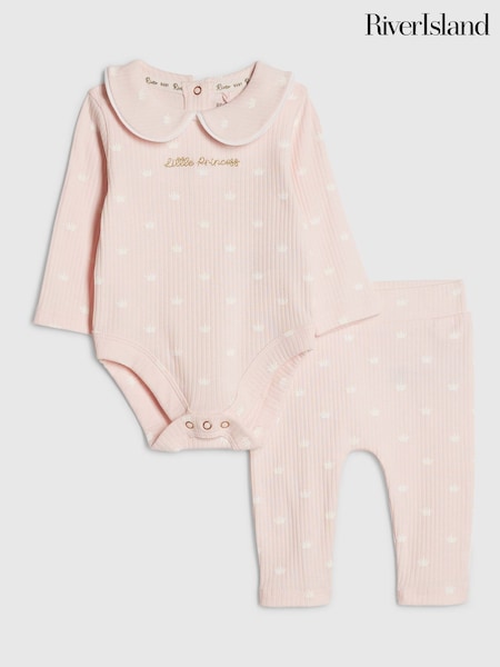 River Island Pink Little Princess Ribbed Bodysuit Set
