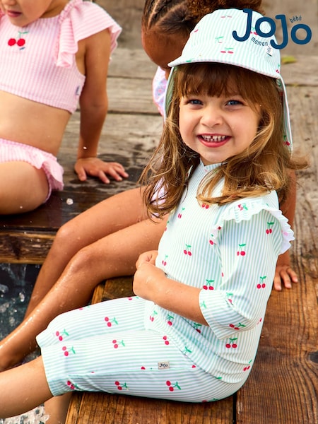 JoJo Maman Bébé Green Cherry Stripe All-In-One Sunsafe Suit