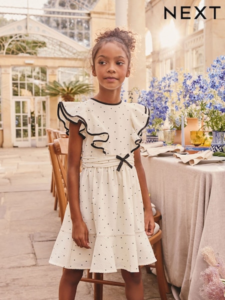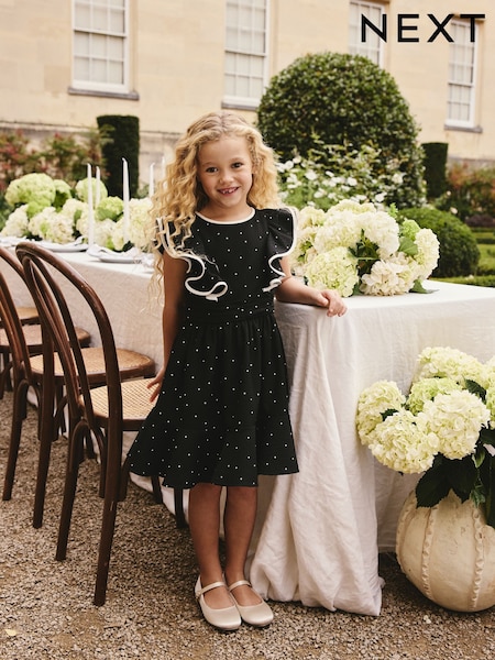 Black Spot Ruffle Sleeve Occasion Dress (3-16yrs)