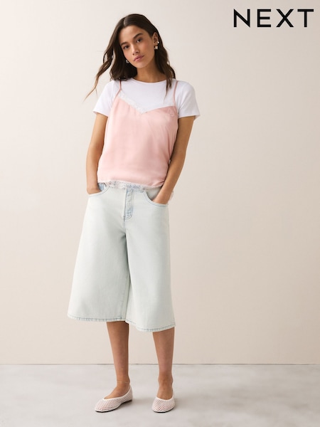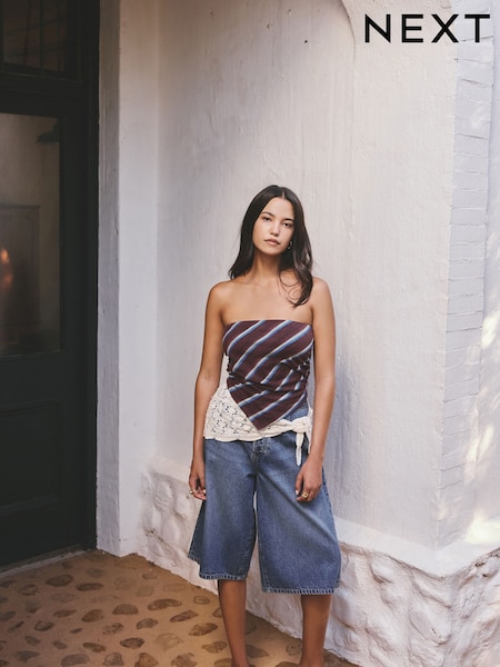 Mid Blue Crochet Scarf Bermuda Denim Jort Shorts