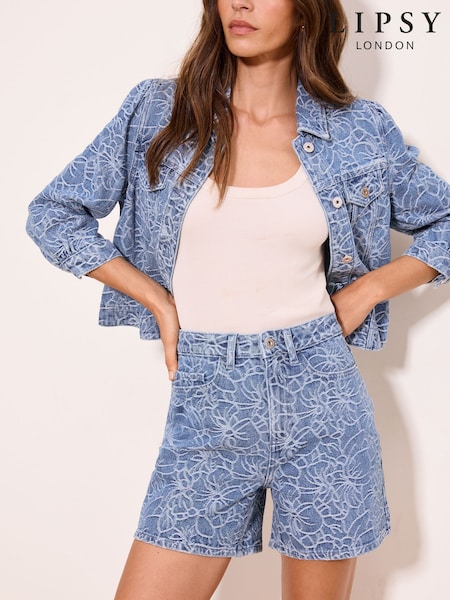 Lipsy Mid Wash Blue Floral Print Classic Denim Mom Shorts