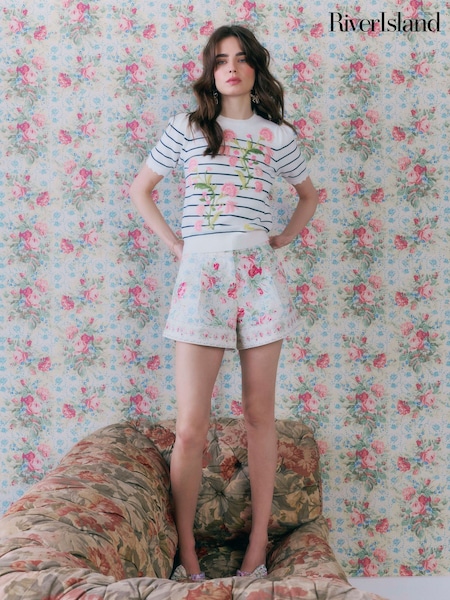 River Island Blue Boucle Faux Leather Scallop Trim Mini Skirt