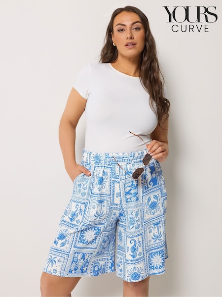 Yours Curve Baby Blue Jersey Crinkle Shorts