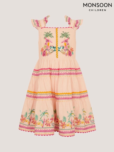 Monsoon Pink Tina Tropical Toucan Embellished Dress