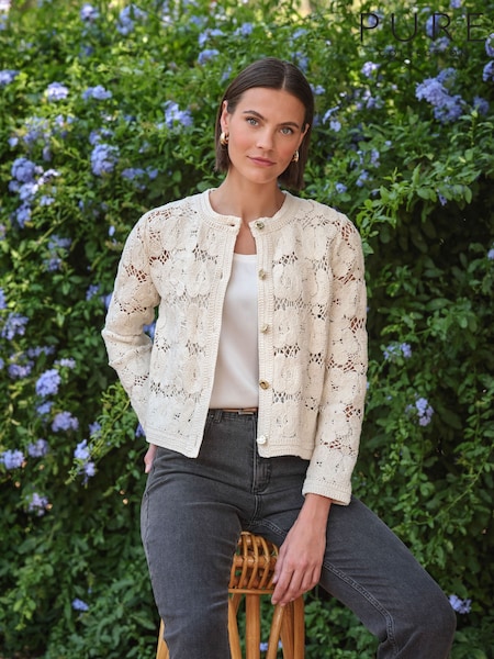 Pure Collection Cream Gassato Swing Long Sleeve Cardigan