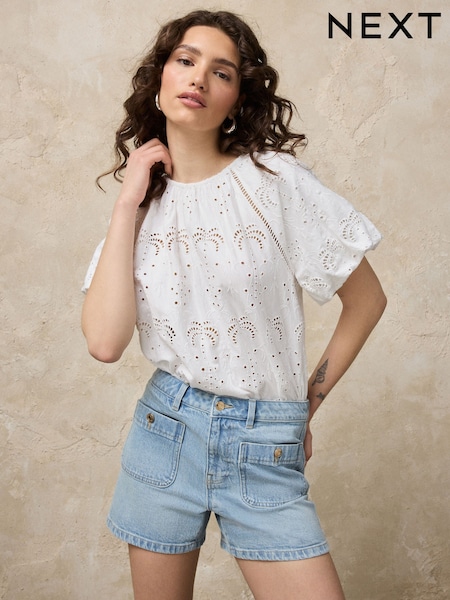 Mid Blue Patch Pocket Mini Shorts