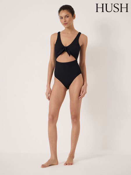 Hush Black Maren Crinkle Tie Front Swimsuit