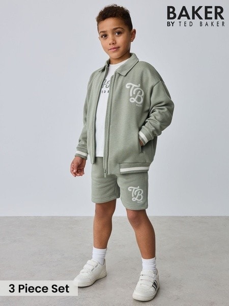 Baker by Ted Baker Green Varsity Jacket, T-Shirt and Shorts Set