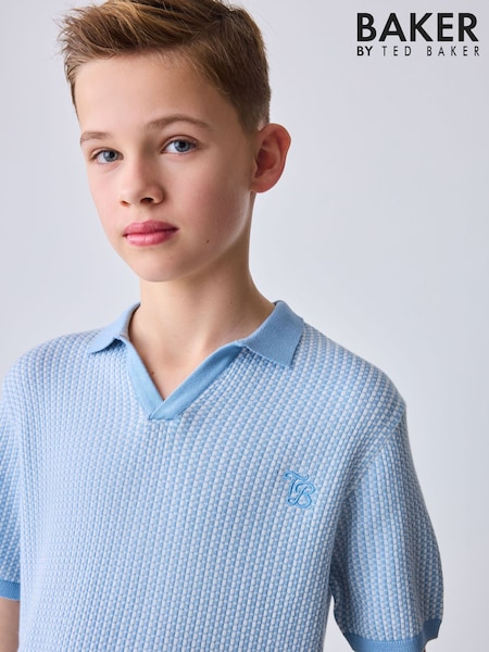 Baker by Ted Baker Knitted Blue Polo Shirt