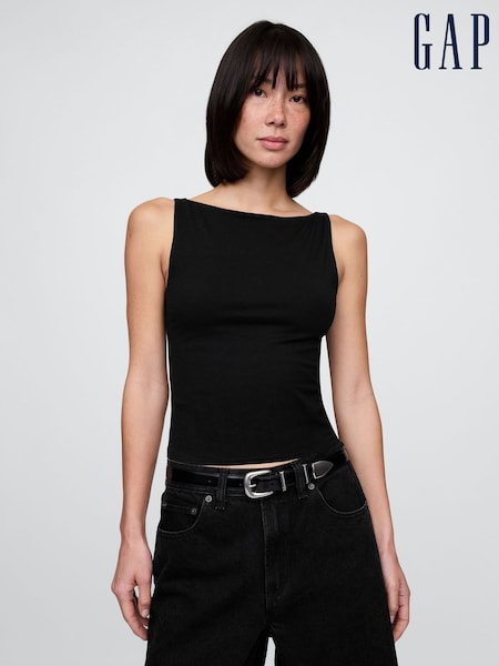 Gap Black CloseKnit Jersey Boatneck Crop Vest