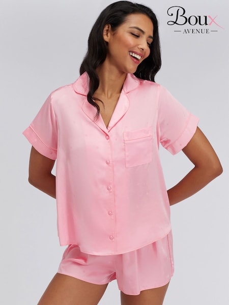 Boux Avenue Pink Spot Satin Short Pyjamas Set
