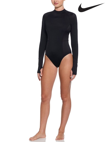 Nike Black Hydralock Long Sleeve One Piece Swimsuit