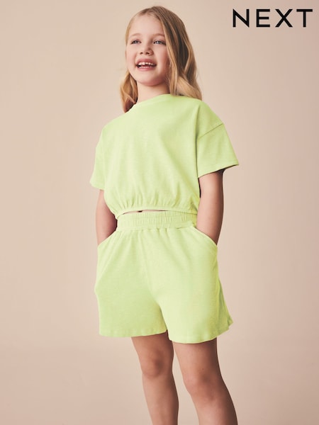 Green Washed Ribbed Shorts Set (3-16yrs)