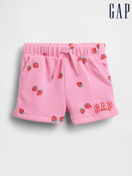 Gap Pink Strawberry Logo Pull On French Terry Shorts (6mths-5yrs)