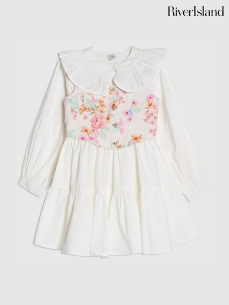 River Island White Frill Collar Floral Waistcoat Dress