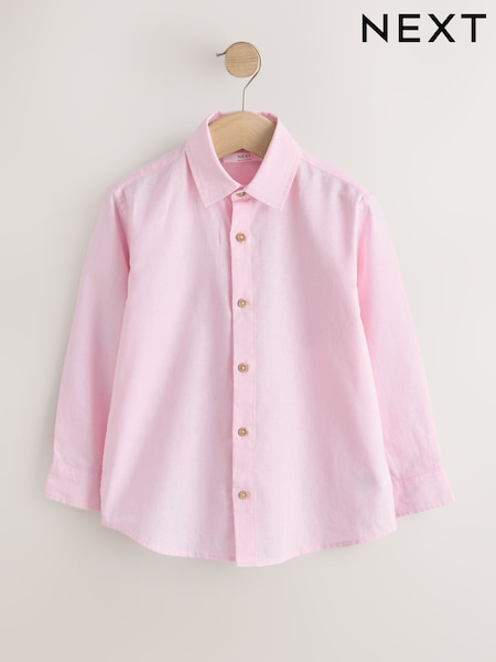 Pink Long Sleeve Relaxed Linen Blend Shirt (3-16yrs)