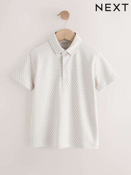 Ecru Check Short Sleeve Jersey Polo Shirt (3-16yrs)
