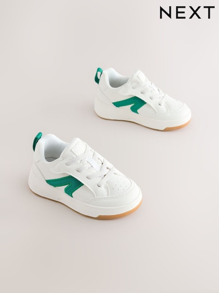 White/Green Wide Fit (G) Elastic Lace Trainers