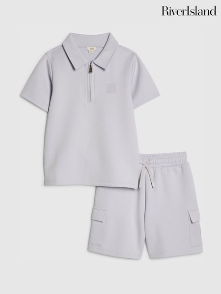 River Island Blue Slim Fit Scuba Polo & Short Set