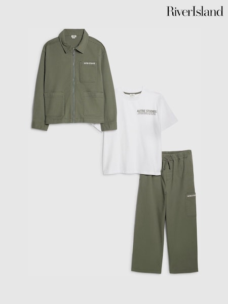 River Island Green Twill Shacket & Trouser Set 3 Piece