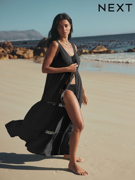 Black Tie Front Maxi Length Cover-Up
